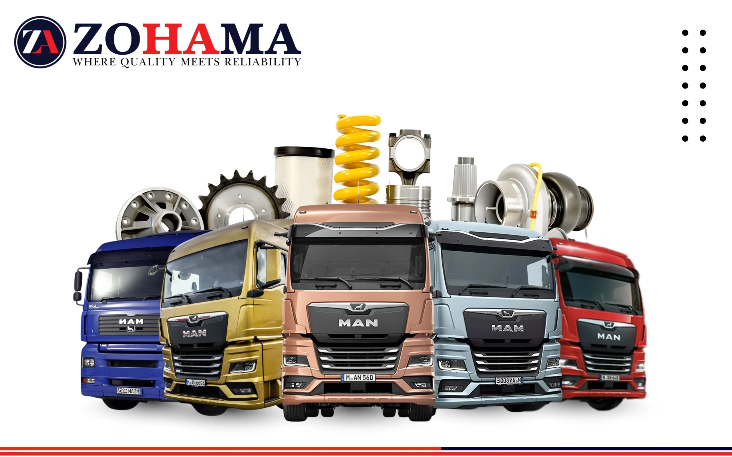 Explore our MAN Truck Replacement Parts Catalogue, featuring reliable components manufactured by HallCrow International under the Zohama brand. Built for durability and performance, our parts support MAN Trucks across various models and applications.